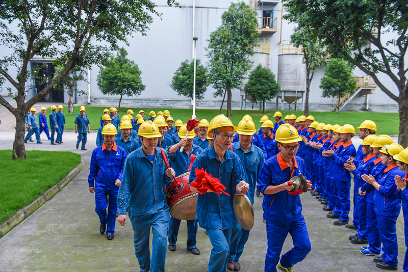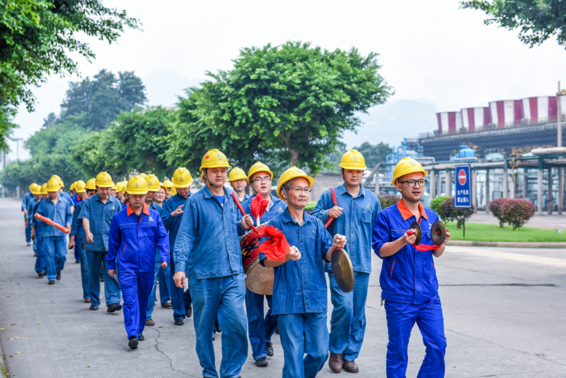 上午9点,祝捷队伍前往制醇车间主控室进行祝捷。