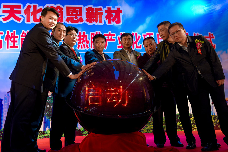 仪式最后,台上所有嘉宾共同触摸启动球,标志着云天化瀚恩新材年产140万平方米高性能电子导热膜产业化项目正式启动。