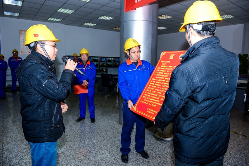寒冬正甚,傲梅吐芳。1月16日,公司甲醇装置传来捷报,甲醇装置连续安全稳定运行100天,收获甲醇装置史上第4个“百日红”,这也是公司2018年生产装置的“开门红”。上午9:00,踏着欢快的锣鼓声,公司领导杨志、杜伟,各专业副总、总监以及公司中级管理人员和员工代表组成祝捷队伍,前往甲醇车间进行祝贺。
