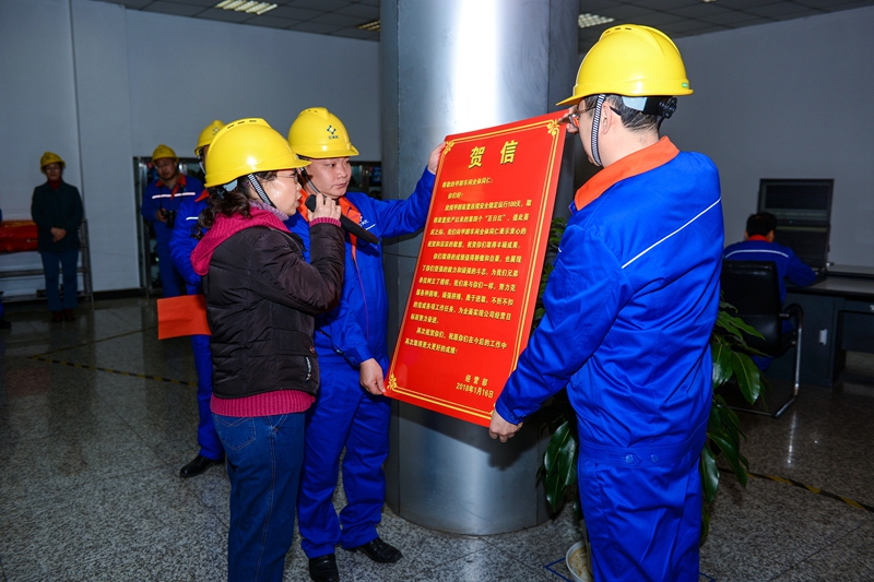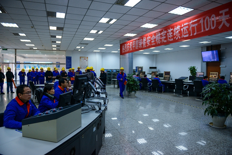 在甲醇车间主控室,前来祝捷的人群齐聚一堂,每个人的脸上都洋溢着喜悦和自豪,分享这历史性的一刻。自2017年10月10日甲醇装置开车以来,甲醇车间全体员工以“百日红”常态化为目标,严格现场巡检,积极查找排除装置隐患,优化工况,精心维护,克服了煤种多变、碎煤仓堵煤、管道设备腐蚀泄露、排渣系统堵渣、控制阀在线更换等困难,有效保护了装置的“安稳长满优”运行。“百日红”的取得,是甲醇车间、维保事业部、生产管理部、经营部等相关单位通力协作、锐意进取的结果,是公司干部员工围绕生产中心工作上下一心攻坚克难的收获。