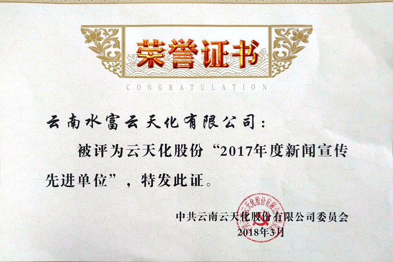 公司先后荣获云天化集团和股份2017年度的新闻宣传先进单位,这是对公司新闻宣传工作的充分肯定,也激励公司继续全面深入做好新闻宣传工作。成绩已属过去,2018年工作中,公司将继续高度重视新闻宣传工作,持续优化宣传媒介和平台建设,广泛宣传公司生产经营、改革发展、安全环保及内部管理等方面的经验及做法,大力弘扬企业主旋律,进一步激发基层通讯员队伍的活力,全力推动公司新闻宣传工作步上新台阶,有效助推公司生产经营、改革发展任务目标实现。