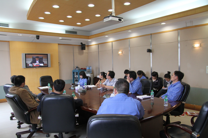 股份公司领导刘和兴、梁洪、陈林、曾家其及本部基层部门负责人在股份本部视频会议室、分子公司相关人员在各片区视频点学习观看了会议内容。