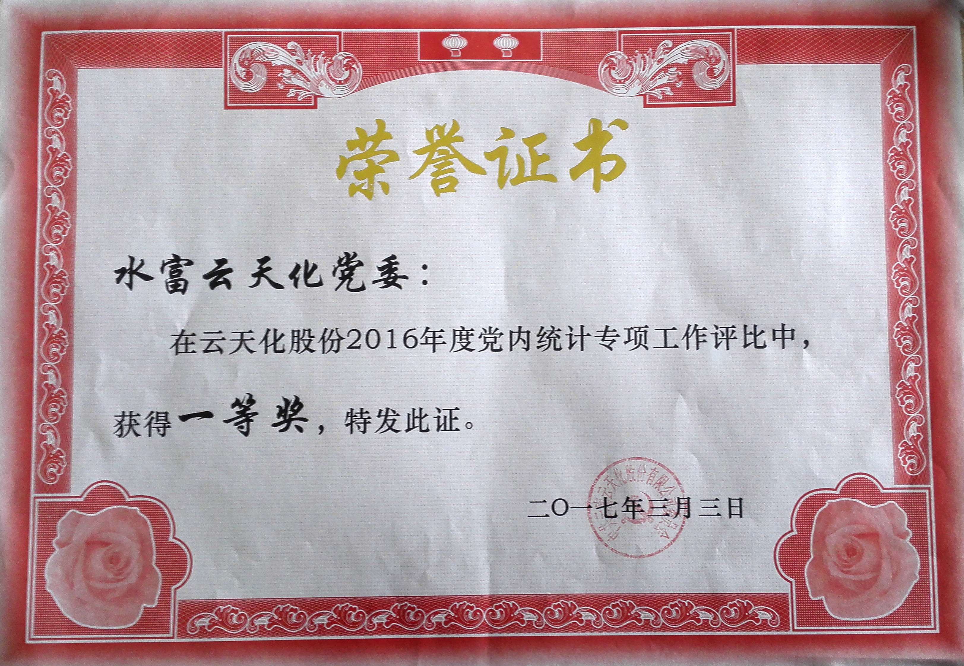 党内统计工作是党的建设的一项重要的基础性、常规性工作,是对党组织和党员队伍的基本状况、发展变化以及党内生活等情况进行调查统计、分析研究,为党的建设服务的一项重要工作,也是系统掌握组织动态、分析组织工作和指导基层党建工作的一种重要手段,在新的历史时期,新的发展阶段,进一步加强党内统计工作,具有重要的意义。 3月3日,云天化股份党委对所属各级党组织2016年度党内统计专项工作进行了综合考评,水富云天化党委获评股份公司“2016年度党内统计工作评比一等奖”,这是对公司党内统计工作的充分肯定,也必将促进党内统计工作质量进一步提升。
