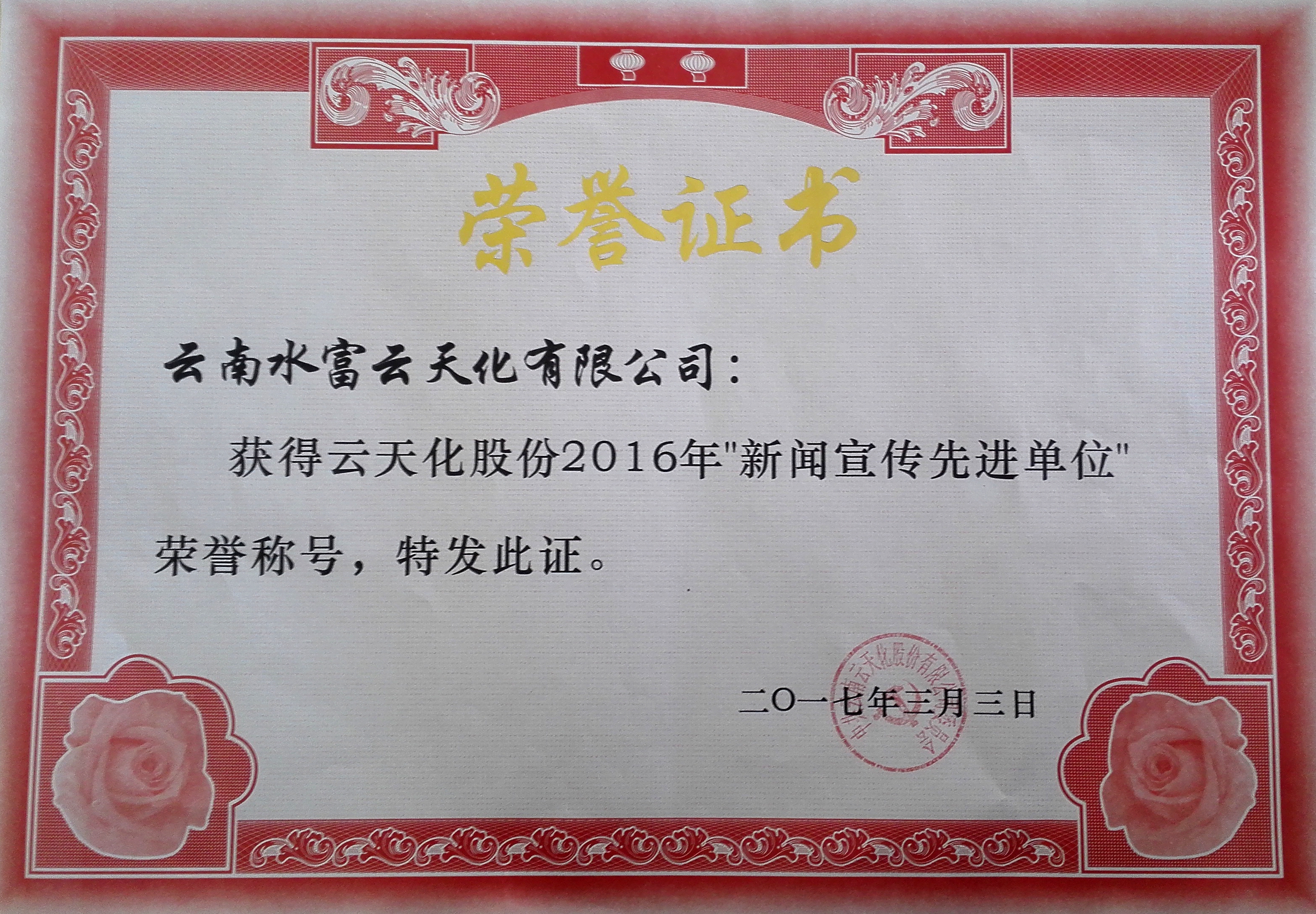 在本次表彰活动中,公司党群工作部栾德强获股份2016年度“十佳新闻宣传工作者”称号,《忠诚、尽职、高效,你做到了吗?》《企业的圣杯:创新永无止境 改革未有穷期》《攻坚克难更须价值创造》《水富云天化全面启动深改,机构人员大幅调整》获评股份2016年度优秀新闻作品。