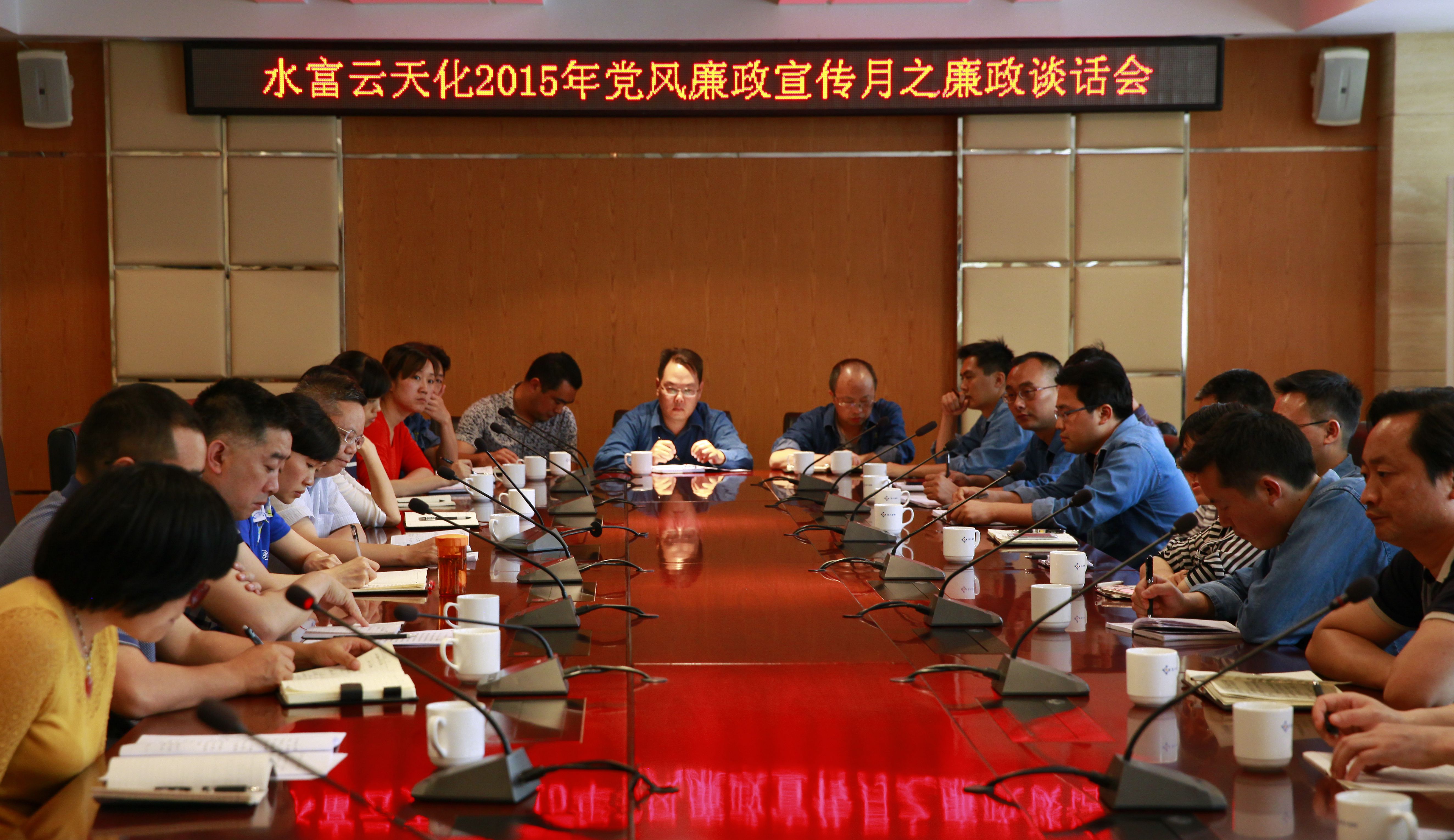 召开一次廉政专题谈话会,是公司今年党风廉政宣传教育月活动的主要内容之一,5月12日下午,公司在云天宾馆一会议室召开了此次谈话会,公司党委书记梁洪,党委副书记、纪委书记、工会主席宋玉,公司近几年新任职干部、岗位调整的干部、高风险岗位干部及资产经营单位负责人参加了谈话会。