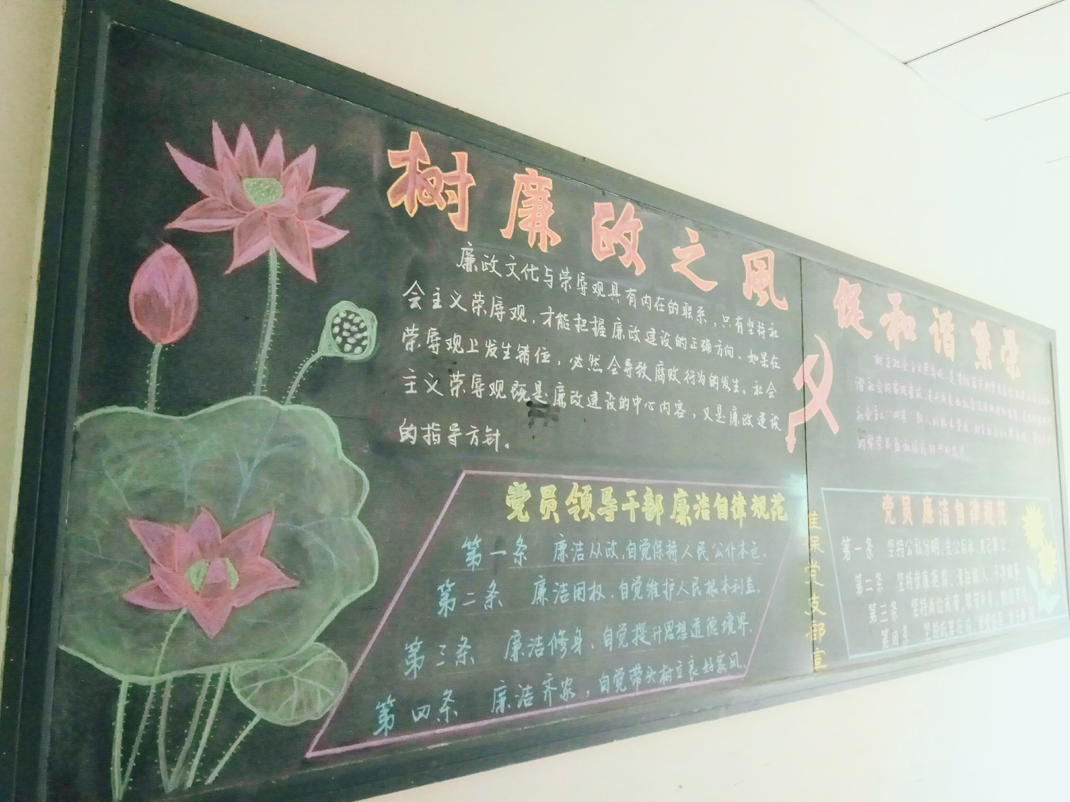 回顾习近平总书记在十八届中纪委五次全会上的重要讲话,深刻分析党风廉政的建设的重要性。维保中心党支部积极相应中央、省、集团、股份和公司党委的号召,坚决把廉政文化建设作为反腐倡廉的一个重要组成部分并以此为契机创办此次黑板报。旨意通过运用黑板报宣讲的方式,提高中心全体党员、干部的廉洁文化修养,陶冶他们的情操,在整个维保中心营造“人人思廉,人人倡廉”的良好氛围。