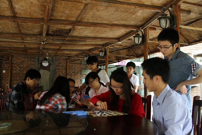 在下午的活动时间中,开展了棋牌比赛。各组根据各组人员的特长,在斗地主、象棋、跳棋、五子棋、双扣等5种棋牌比赛中选择多种进行了比赛。本次活动多为竞赛类的活动,但大家有着共同的认识--比赛第二,友谊第一,并将这一共同认识贯穿活动始终。