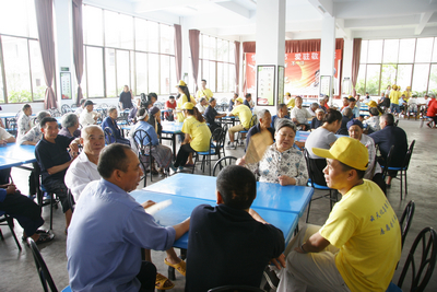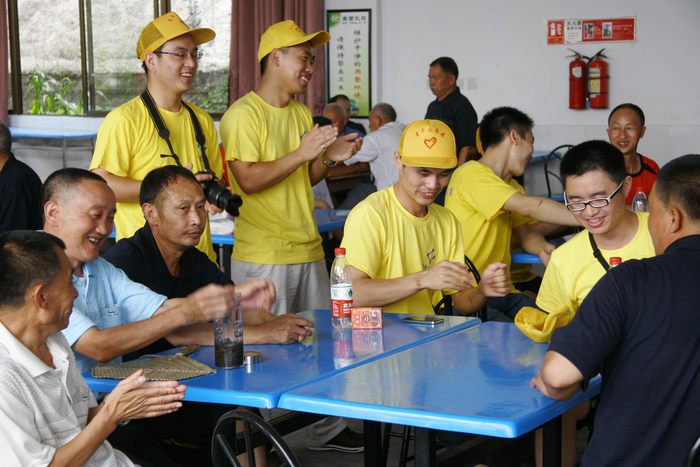 2012年8月5日上午09:00,20余名青年志愿者来到水富县中心敬老院。敬老院院长首先带领志愿者们去看望正在活动中心活动的老人们,他们有的在打桥牌、有的在聊天、有的在打乒乓球随后,志愿者们轻松地参与到老人们的活动中,与老人聊起了家常,谈起了兴趣,切磋上了乒乓球技,老人们玩得很开心。