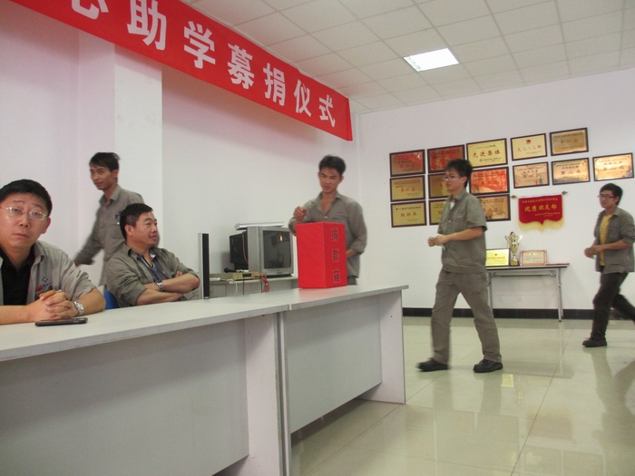 2012年9月5日下午13:30,在天安化工检修车间二楼大会议室里,由检修党支部、团支部倡导发起的助学募捐仪式如期举行着。