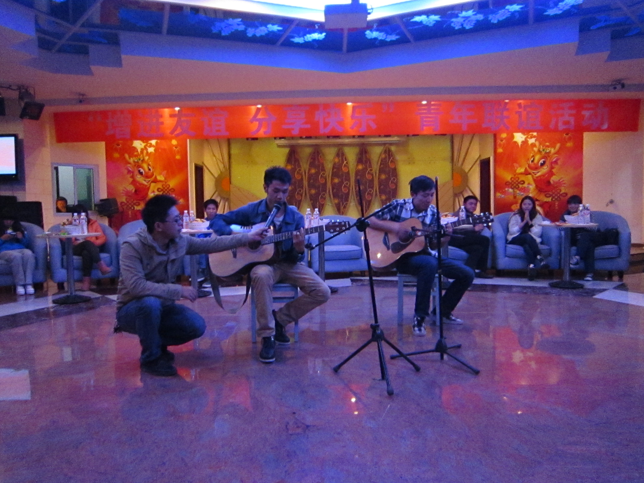 晚上7:30,青年联谊活动正式开始。活动中,主持人首先介绍了参加本次活动的嘉宾及各分子公司的青年朋友,股份本部青年朋友以热烈的掌声对他们的到来表示欢迎。接着进行了“寻找有缘人”、“击掌传花”、“快乐不N机”等游戏互动。“寻找有缘人”让大家对自己的“有缘人”充满了期待,在相互认识之后大家互留电话等联系方式,还一起献上了精彩的节目,更进一步拉近了彼此心与心的距离。随后,各分子公司的青年朋友还带来了自己团队准备的节目,吉他演奏、双人对唱、街舞、机械舞、现代舞等精彩纷呈,赢得了阵阵热烈的掌声。