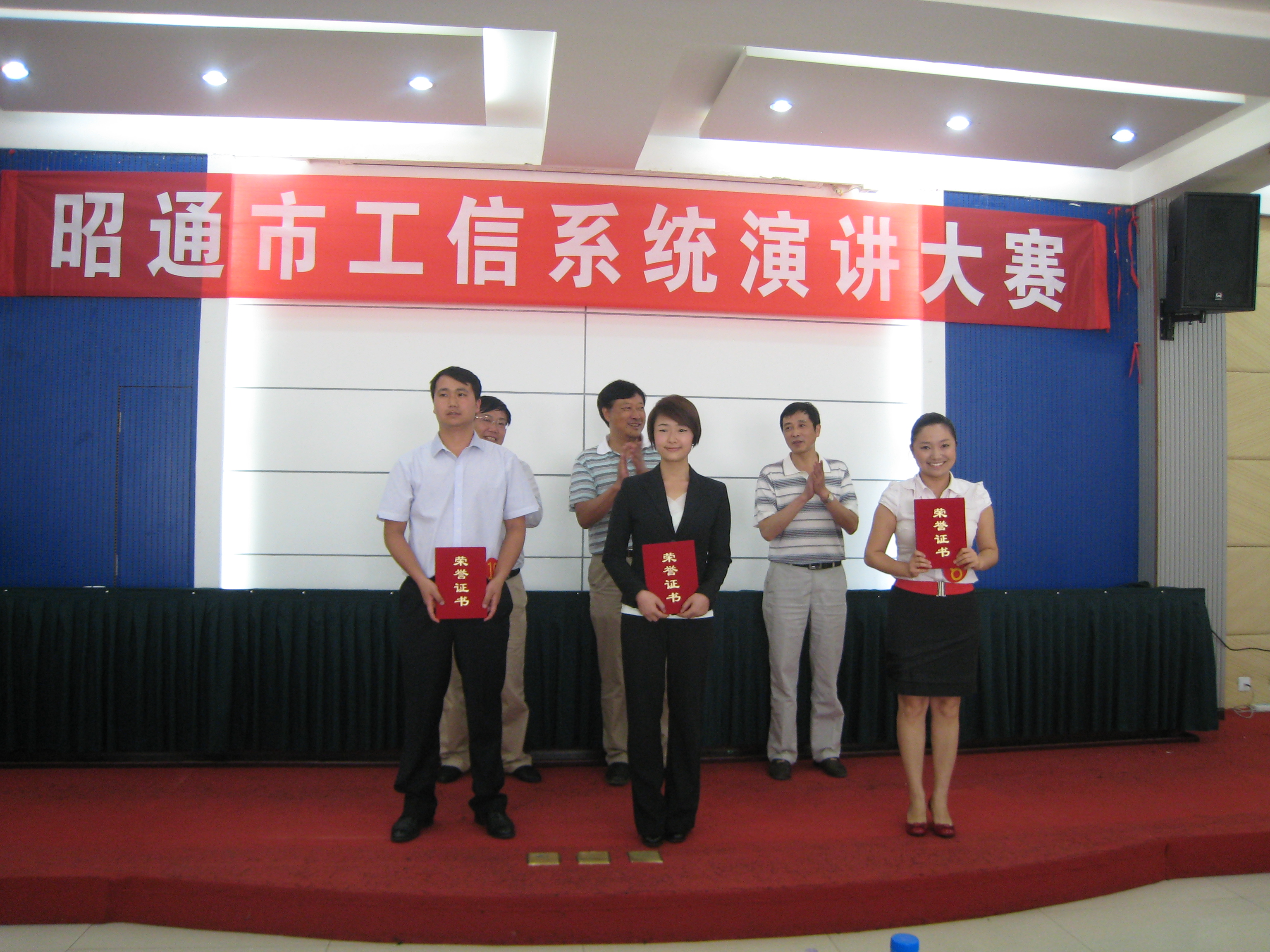 6月27,由昭通市工业和信息化委员会组织开展的“昭通市工信系统演讲大赛”在昭通宾馆隆重举行,共有来自昭通市内22支代表队的37名选手参加了本次比赛。经过激列角逐,最终,公司选派的两名选手凭借出色的演讲荣获了本次比赛的一、二等奖,同时公司也荣获了“组织奖”这一殊荣。