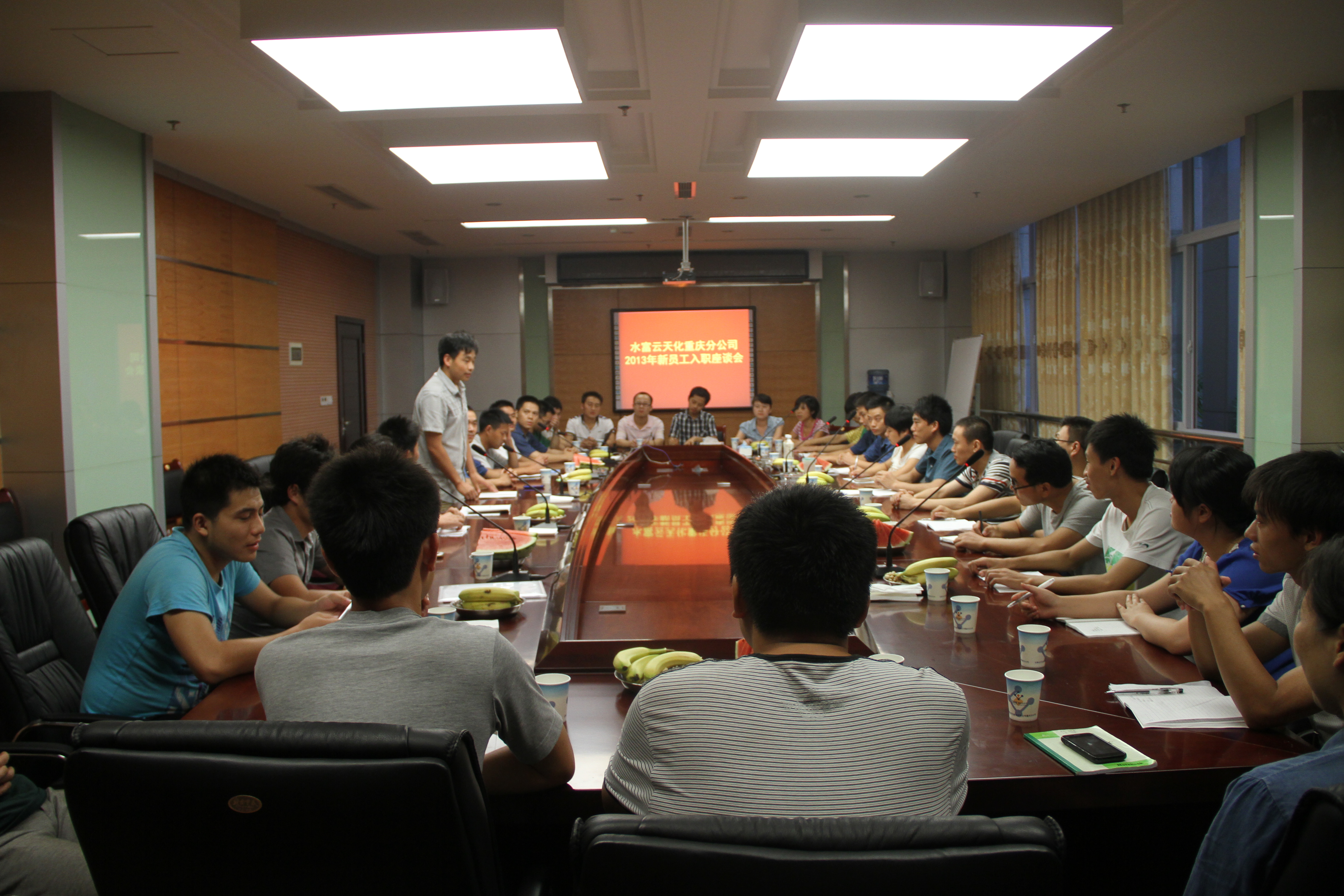 8月29日晚19:00在云天化新材料产业园行政楼第二会议室,公司团委组织新老员工开展入职交流座谈会。参会的人员包括2013年新招聘的17位新员工以及分公司各基层团组织的团干和优秀青年代表。会议由公司团委副书记冉太云主持。