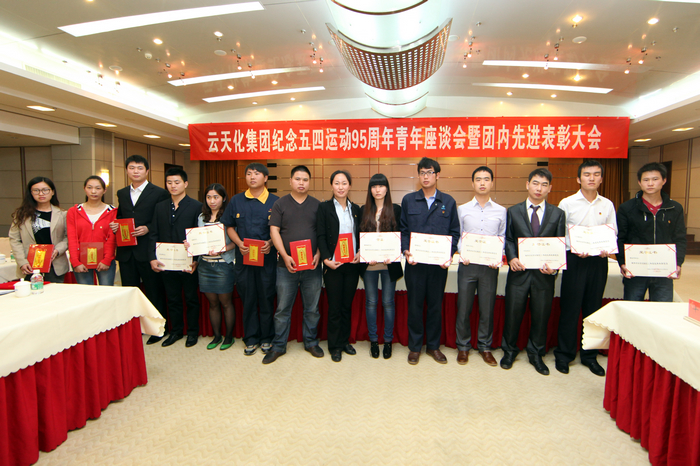 5月9日上午9:00,云天化集团纪念五四运动95周年青年座谈会暨团内先进表彰大会在云天化集团总部多功能厅隆重召开,来自集团下属各单位近110名青年代表、团组织负责人参加了会议。大会由集团团委副书记胡耀坤主持,集团公司总经理张嘉庆、党委副书记陇贤君及相关领导出席了会议。