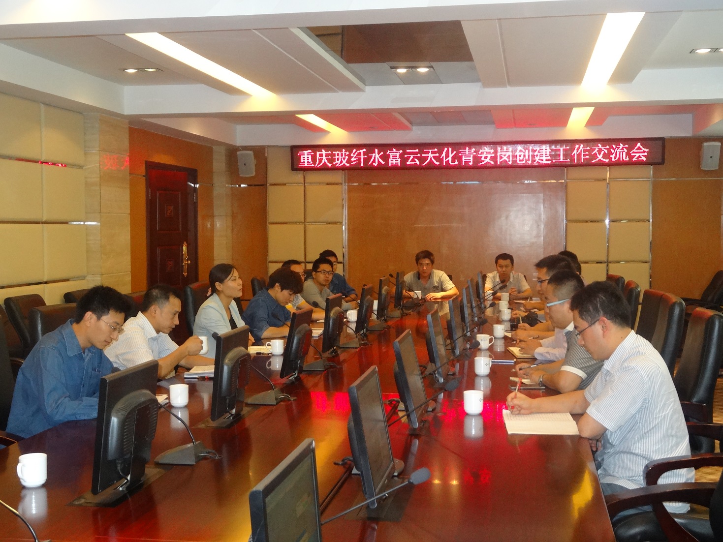 8月23日,重庆玻纤团委副书记刘文杰、安全环保部消防科科长韩治宇、各分厂“青安岗”负责人到公司进行“青安岗”创建工作交流,公司团委书记李天会,安全环保部经理刘贵春,中心化验室党支部书记陈孝红以及各团支部负责人与来宾进行了交流座谈会。
