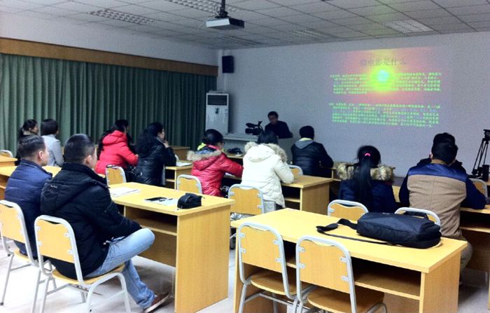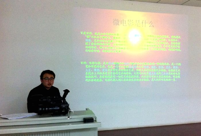 培训会中,田枭老师通过PPT展示和多个微电影案例,深入浅出地对微电影拍摄器材、手法、技巧、切入点以及表达方式进行了详细讲解。然后田老师组织在场人员按照剧组人员编制分配角色,通过大家的共同努力完成了一个一分钟左右的微电影片段,最后大家看着自己的劳动成果都露出了欣慰的笑容。