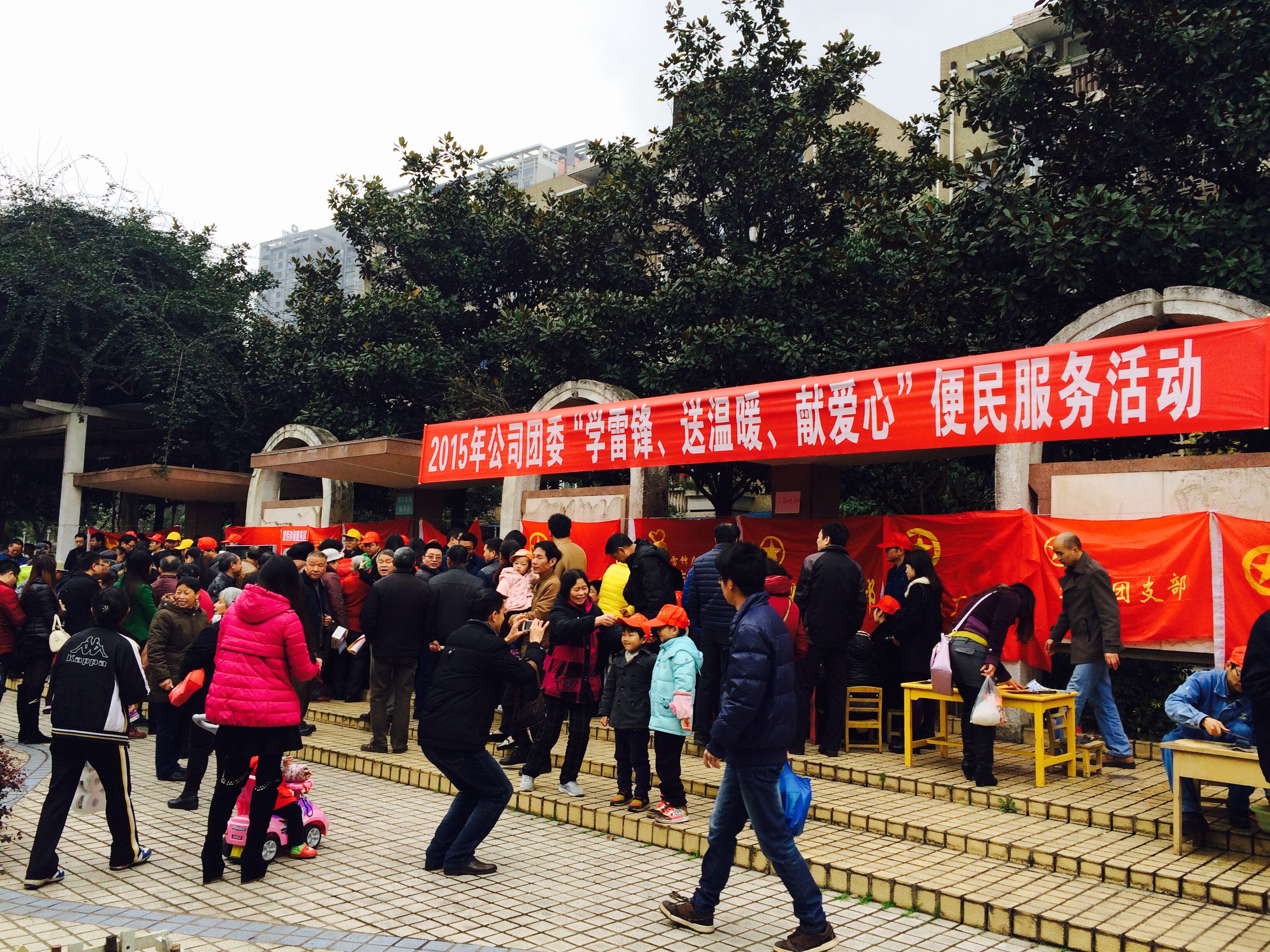 早上9:00,文化广场上就已人声鼎沸,热闹非凡,雷锋事迹的宣传片及歌曲在现场滚动播放着,一面面鲜红团旗在春风吹拂下格外温暖和艳丽。学雷锋活动是水富云天化的老传统,早已成为公司开展群众性精神文明建设的一项品牌活动。多年来,随着生活方式及行为模式不断发生变化,服务项目也不断拓展延伸。今年,各团支部结合自身工作特点开展了小家电维修、商品义卖、电脑键盘清洗、磨刀、爱心义诊、爱心捐赠、兑换零钞、二手商品互换、雷锋故事会、小区文明规范宣传等服务项目。这些形式多样、内容丰富的服务项目,受到了小区居民的热烈欢迎和热情参与。