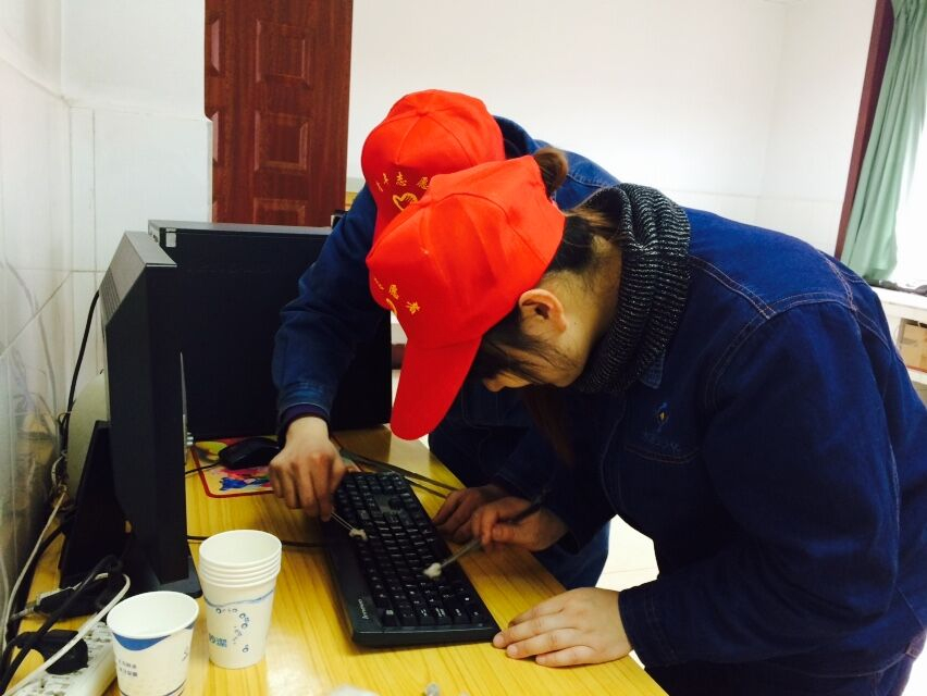 早上8:30,31名青年志愿者准时来到中化大楼门前集合,在进行清洗键盘的注意事项强调和分组后,志愿者们在团委的组织下,分别前往申报清洗键盘的单位开展志愿服务活动。本次志愿服务活动分为3个大组同步开展。志愿者们每到一处,都受到所在单位的热烈欢迎。在进行简单的分工后,大家便忙开了。为了在不拆键的情况下,将键盘清洗得更干净,志愿者人手一把镊子,夹住蘸上无水酒精的棉花,认真的擦洗每一颗按键缝隙之间的灰尘和污垢。当志愿者们将焕然一新的电脑键盘交给单位时,无数的感谢和赞誉让志愿者们深深的体会到帮助别人、快乐自己的成就感。经过志愿者们3个小时的连续作业,截止11:30,共完成前期申报的216个键盘的清洗。至此,三月文明礼貌月“学雷锋”便民服务活动画上了一个圆满的句号。