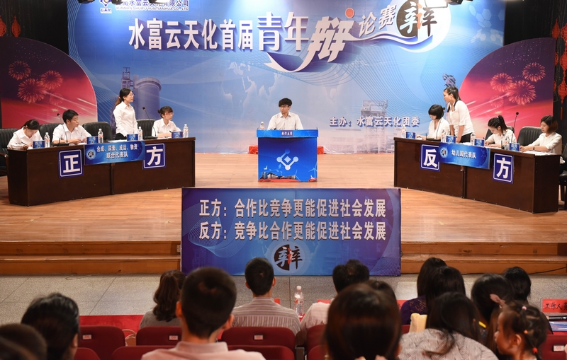 为进一步引导公司青年员工主动关心公司生产经营和改革发展,积极营造明辨、善思、尚学的良好氛围,5月25日晚,公司团委在电视演播厅举办了“水富云天化首届青年辩论赛”初赛。本届辩论赛由来自11家基层团支部组成的四支代表队参赛,初赛分两场比赛进行角逐,经过对阵双方唇枪舌剑的激烈交锋,合成、尿素、成运、物资联合代表队和聚甲醛、制醇、季戊四醇联合代表队胜出。