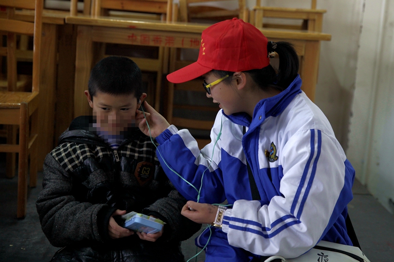 志愿者和小朋友一起分享音乐