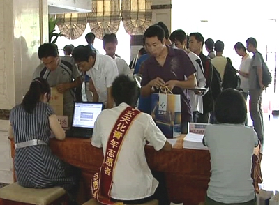 7月6日早上8:30,记者来到云天宾馆,只见前来报到的新员工已经络绎不绝,登记台前排起了长队。为了给新员工营造一个和谐温馨的环境,公司派出专人在宾馆大厅设立了报到处,随时迎候新员工的到来。从填写报到表、领用相关资料到宿舍安排、身体检查,各项工作细致入微,方便快捷,让新员工一到公司,就感受到了迎面而来的亲切与舒适。