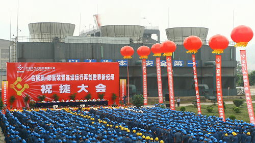 2008年8月14日,公司合成氨、尿素装置再次取得丰硕成果,突破原有世界纪录,再次创造了一个新的纪录。为了隆重庆祝这一令所有云天化人和中国化工人骄傲的成绩,公司当天上午在生产现场举行盛大的祝捷仪式。