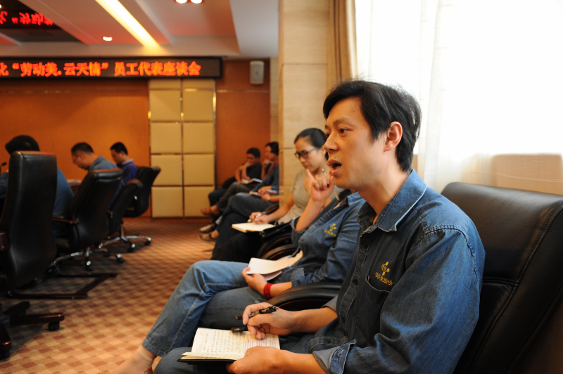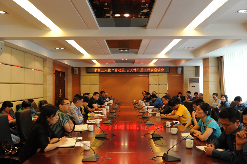 5月是劳动者的节日,为唱响“崇尚劳动 劳动光荣”的主旋律,激发广大职工的聪明才智,5月29下午,公司工会组织召开“劳动美.云天情”员工代表座谈会。公司劳模代表、巾帼标兵代表、优秀班组代表、驻外项目建设人员代表以及各相关部门负责人、基层工会主席齐聚一堂,大家谈体会、提建议,共话劳动光荣,表达爱企之情。