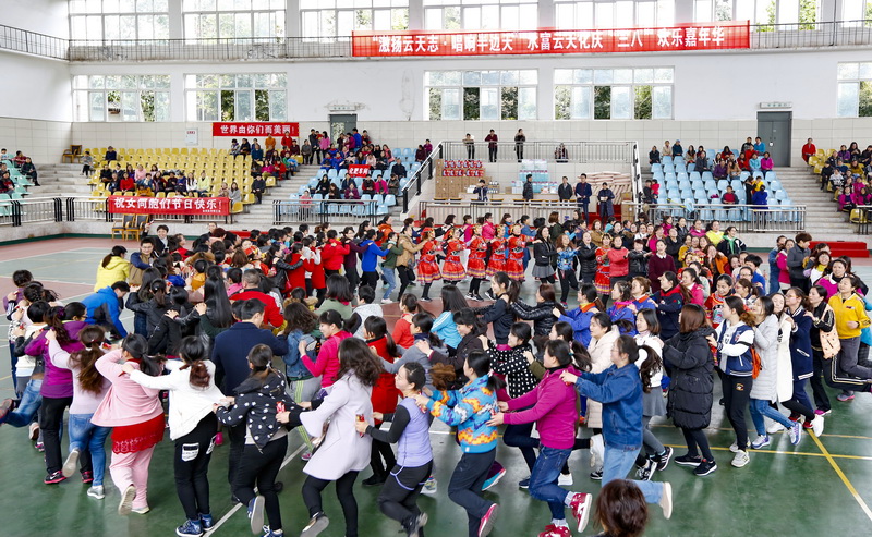 3月8日下午,水富云天化工会女职工委员会举办了一场主题为“激扬云天志·唱响半边天” 的欢乐嘉年华活动,来自水富云天化生产、职能及后勤等各条战线上的500余名女职工参与了此次活动。当天下午2:30,水富云天化体育馆内人头攒动,热闹非凡,由现场全体女职工共同带来的开场舞串烧,拉开了本次活动的序幕。全体女职工随着音乐节拍集体起舞,用热情欢快的舞姿表达心中的喜悦,展现新时代女职工的风采,为现场观众献上了一台健身舞蹈大餐。