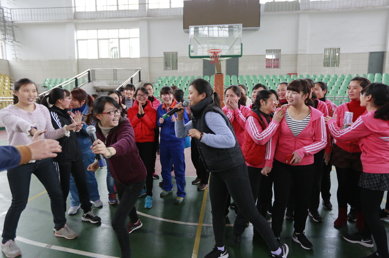 随后的游戏环节中,公司工会在活动形式上推陈出新,采用游戏与唱歌相结合的方式,每项活动须由各队伍的参赛成员和各自的猜歌助力团共同合作完成。随着裁判一声哨声,“信任往前冲”、“飞花大接力”和“小企鹅漫步”三个趣味项目激情上演,女同胞们个个精神抖擞,你追我赶,奋勇争先,畅快淋漓地享受着运动的快乐;而每一个项目的唱歌环节,则更是精彩纷呈,各队助力团“给力”的助唱,为比赛结果增加了几分悬念,现场的喝彩声和欢笑声不绝于耳。值得一提的是,此次活动还特别设置了现场观众互动“歌名猜猜猜”环节,女职工们积极参与其中,纷纷一展歌喉,将活动推向了高潮。