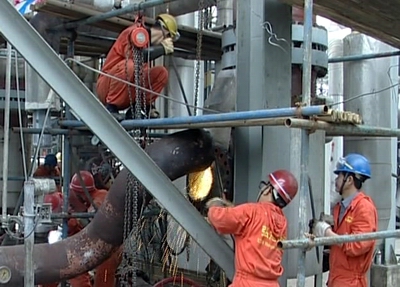 在弘旭公司检修人员的努力下,截止4月10日,强制更换的30片法兰焊接工作已全部完成,目前,正在进行焊缝探伤检测,整体检修工作已接近尾声。
