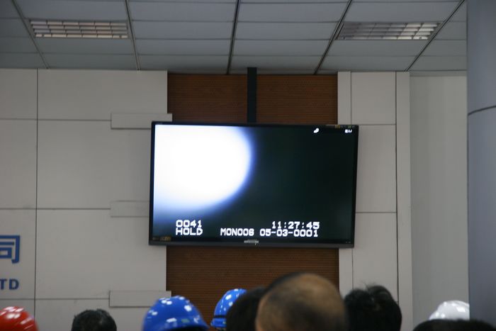 在制气车间领导统一指挥协调下,当天16时38分,工艺人员点燃点火烧嘴,一分钟之后点燃开工烧嘴,17时5分点燃1号煤烧嘴,紧接着点燃2、3、4号煤烧嘴。从主控远程监控上显示,从烧嘴喷射出白炽色的火焰熊熊燃烧,散发出瑰丽的光芒,美丽无比。此时,警戒线外许多人员拿出手机、相机纷纷拍下这一历史性时刻;而警戒线内的工艺人员此时却无暇顾及观看这一景象,依然全神贯注地关注控制工艺参数,此时只要有一个小小的失误都有可能造成开车工作的中断。