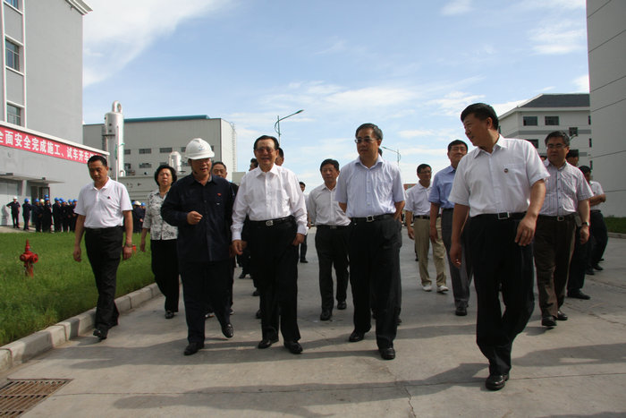 7月9日下午,在内蒙古自治区党委书记、人大常委会主任胡春华,全国政协经济委员会副主任张国宝,自治区政协主席任亚平,自治区党委常委、秘书长符太增,呼伦贝尔市市委书记罗志虎的陪同下,中央政治局委员、全国政协副主席王刚来到金新化工进行视察。