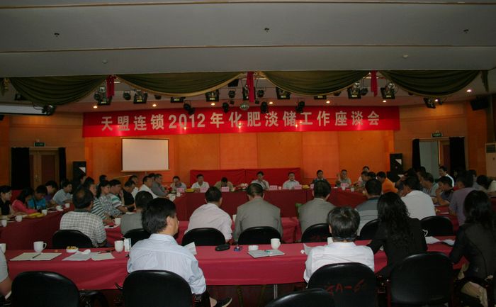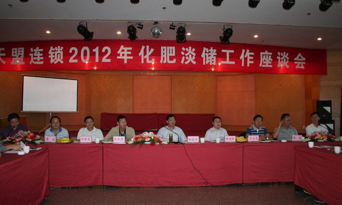 7月27日,天盟连锁在昆明组织召开了2012年化肥淡季储备工作会。股份公司、天盟连锁、天驰物流、天腾化工、昭通天合等领导和相关部门以及加盟商60余人参加了会议。