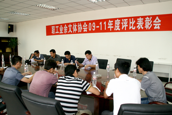 会上,职工书画协会、摄影协会、棋牌协会等11个公司职工文体协会的代表首先依次对本协会2009年-2011年的会员发展、活动开展及存在问题的情况进行了全面梳理和总结。公司工会专职人员对11个协会的经费台账、活动台账、会员台账、内部管理进行了评审点评。公司文化中心主任李彪对各协会三年以来的工作进行了综合总结,在肯定了各协会做出成绩的同时,指出了目前协会存在的问题和不足。