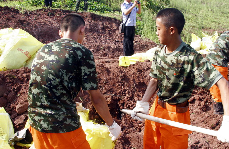 8月8日下午, 第一批40名抢险队员与来自水富县公安消防中队的11名官兵首先赶赴现场,共同开始了紧张有序的抢险工作。