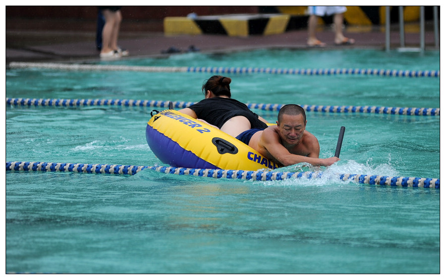 在竞技项目开展的同时,比赛还设置了水上投篮、25米障碍泳、赛龙舟及打捞总动员等妙趣横生的水上趣味项目,让更多员工参与其中,而这些项目的开展更让整个水上运动会迅速升温。岸上的人们被参赛者逗得哈哈大笑,水中的队员们却是沉浸其中、自得其乐。每一个人都尽情感受着运动带来的快乐。