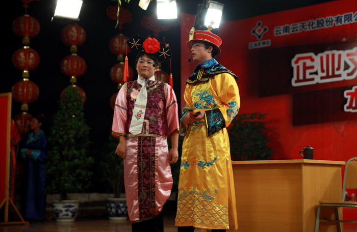 情景剧《爱在云天》以弘扬公司在转型升级过程中,员工舍小家为大家,为公司发展甘愿奉献的优秀文化为主题,刻画了云天化人开疆扩土,不断前进的形象。为使剧情更生动感人,参加本次决赛的节目,在原有的情节上增加了背景音乐和旁白,以便于让观众了解故事,烘托故事男女主人翁舍小家为大家的情怀;并且在表演过程中结合了情景对话和各情节对应风格的舞蹈,特别是压轴段的《鸿雁》,将故事中身处呼伦贝尔的男主人公对家人的思念寄托于鸿雁托书,将《爱在云天》的内涵表达的淋漓尽致。