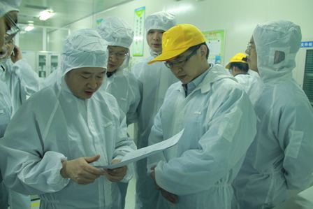 在检测中心,曾家其详细询问了纽米科技隔膜产品各项性能指标情况,纵向、横向各性能一致性以及长周期连续生产的产品质量稳定性,并进一步了解了产品的厚度、强度、透气度等性能对电池性能的影响,对纽米科技的隔膜产品质量状况及应用性能给予了充分肯定。