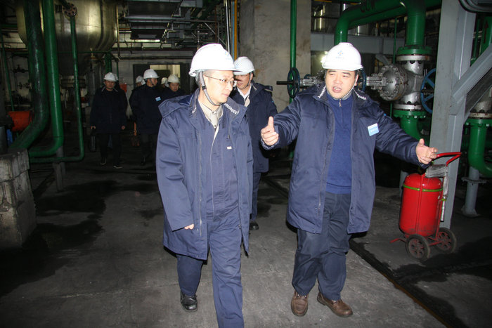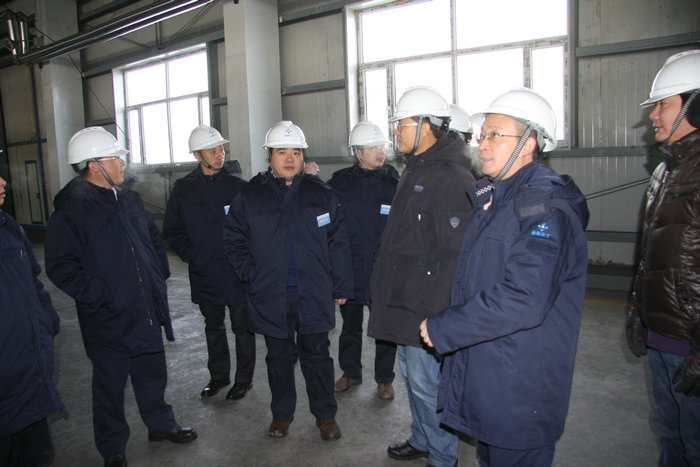 7日上午,在金新化工领导班子成员的陪同下,刘和兴一行冒着呼伦贝尔零下30℃多的严寒,前往金新化工装置现场,对各装置的生产运行情况进行了全面的了解。刘和兴首先来到了气化装置,金新化工副总经理李钢向刘和兴详细介绍了气化装置今年的试车情况、面临的主要困难及解决思路。