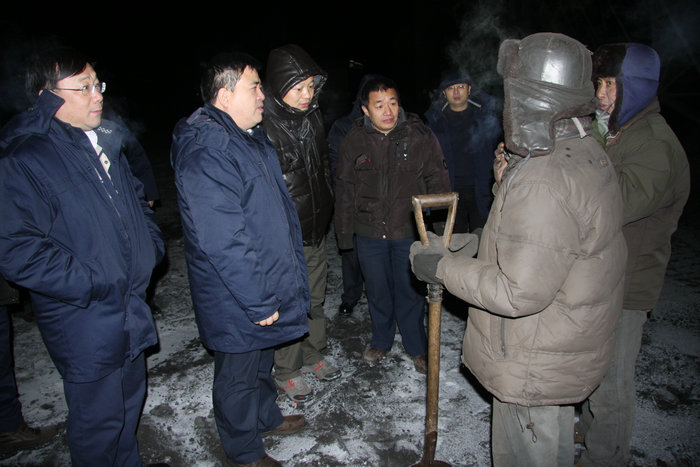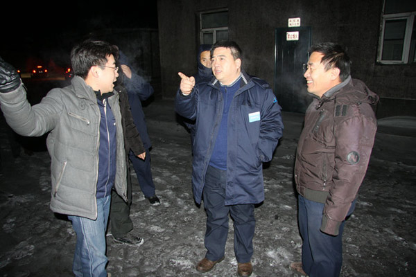 在对周边矿山企业进行考察后,刘和兴专程到东明矿业进行了调研,看望了坚守在工作岗位上的干部和员工。当了解到东明矿业员工在严酷的作业环境下坚持作业,保障了矿区的正常生产时,刘和兴顶着严寒对室外作业的一线员工进行了慰问,亲切地嘱咐员工在室外作业时要做好保暖防护工作,注意作业安全,并对东明矿业全体干部员工以高昂的斗志、有效的管理、创新的思路超额完成全年生产经营目标给予了充分的肯定和赞扬,鼓励大家继续加强企业软硬件的建设力度,向打造和谐绿色矿山的建设目标努力奋斗。