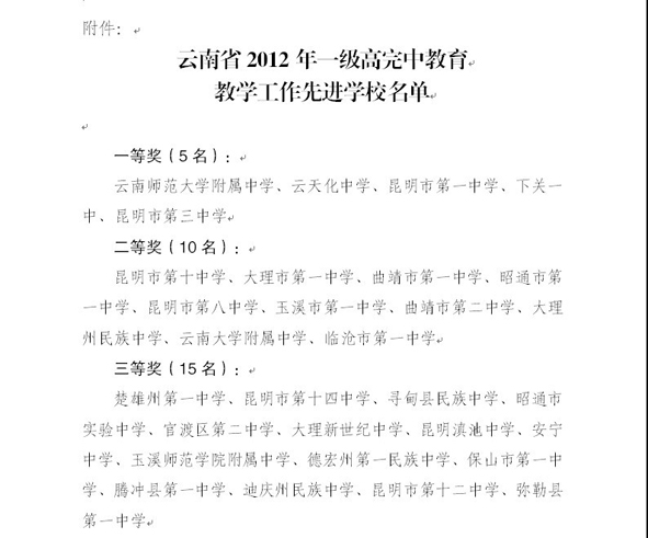 此次云南省教育厅对一级高完中进行的表彰,是地方政府、教育行政部门对学校办学水平的正式评价。表彰所依据的数据,均来自于教育行政部门,具有相当的权威性和导向性。