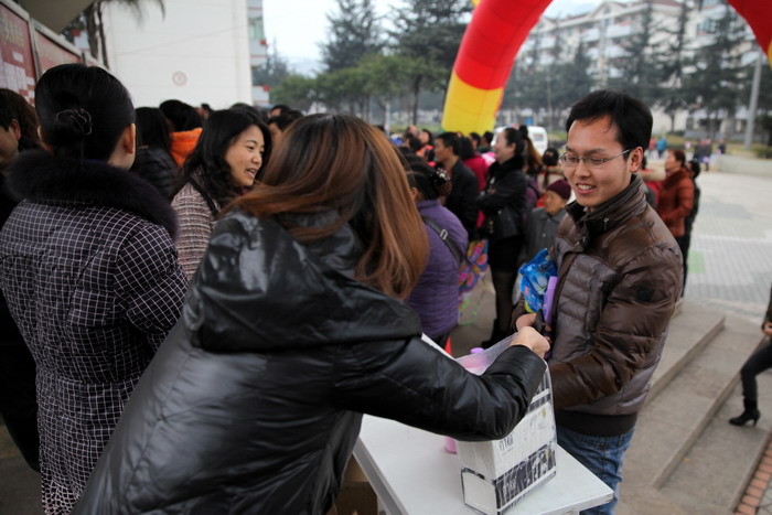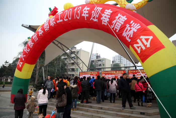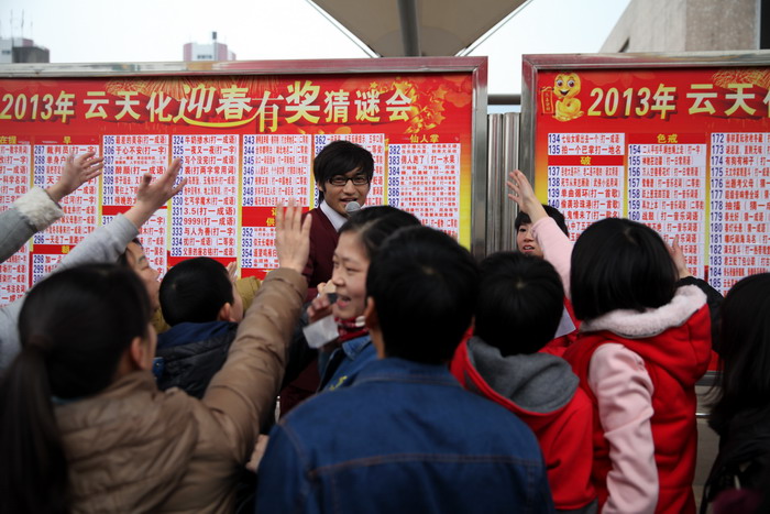 2月11日,新年的大年初二下午三点,小区广场上早早就挤满了人,公司本部职工2013年迎春猜谜会在这里热闹举行。人们纷纷围拢在四块鲜艳的展板前,相互商议着展板上532道各色灯谜的谜底,当主持人宣布猜谜活动正式开始后,大家争先恐后举手作答,而答对者自然是欢呼雀跃,在得到小小自我满足的同时,还能凭借到手的谜题字条兑换到一件非常实用的新年礼物。