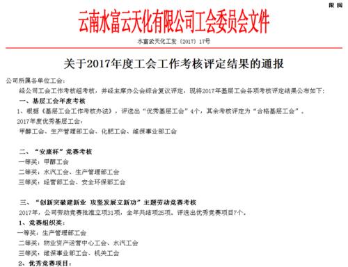 12月22日,集团公司公布《关于表彰2017年度职工思想政治工作暨新闻宣传奖的决定》,对2017年度职工思想政治工作暨新闻宣传先进集体、优秀宣传工作者、优秀新闻稿件(图片)进行表彰,公司获评“职工思想政治工作暨新闻宣传先进集体”称号,同时郭建波、周龙、赵晓梅被评为优秀宣传工作者,《水富云天化“创新周...