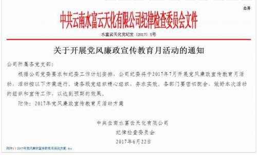 根据公司党委要求和纪委工作计划安排,将今年7月份定为公司“党风廉政宣传教育月”,目前,该活动已正式启动。 结合全面从严治党战略部署和“两学一做”常态化要求,此次宣传教育月活动以“深学规章 严守规矩 争做表率”为主题,主要从“学”和“做”两个方面开展宣传教育工作。学,重点突出对党的十八届六中全会和十...