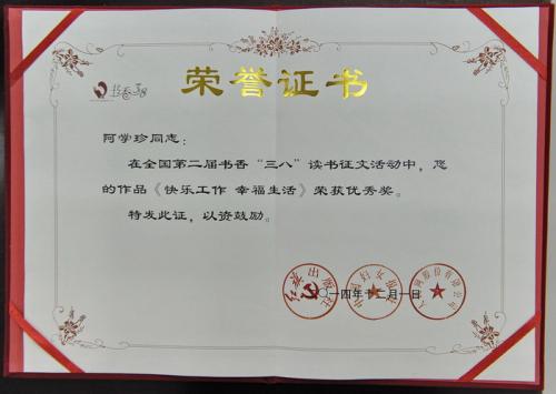 公司女职工在全国第二届书香“三八”读书征文活动中获奖