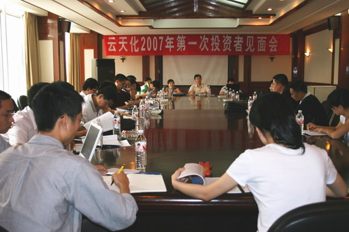 7月11日,公司召开2007年第一次投资者见面会,近20名机构投资者代表与公司董事会秘书、财务总监冯驰,财务部经理钟德宏等人进行了面对面的沟通交流。冯驰对公司今后的发展规划做了描述,并对投资者提出的问题进行了详细解答。7月11日下午,公司2007年第一次投资者见面会在云天宾馆会议室举行,华夏基金、银...