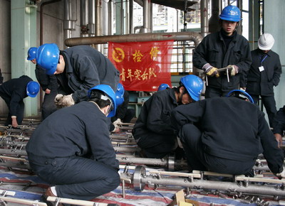 青年突击队员这个当今社会上已不多见的称号,在公司内却常常被人提起,这些年青人,每每出现在生产检修最困难的现场,凭着敢于吃苦、不畏艰难的精神,为公司的生产发展默默做着贡献的同时,也无声的诠释了青年突击队的真谛。1月9号,在聚甲醛车间B-466结晶器的抢修现场,我们又一次见到了他们的身影。1月8号,因生...