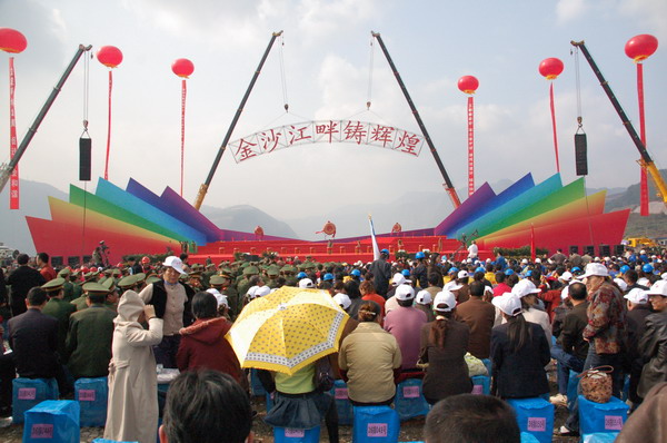 “我宣布,金沙江向家坝水电站正式开工!”26日上午10点17分,中共中央政治局委员、国务院副总理曾培炎话音刚落,震天的礼炮声响彻金沙江两岸。我国第三大水电站――向家坝水电站正式拉开建设大幕。开工典礼在川滇两省交界处坝址左岸施工区围堰基坑举行。高高悬挂的气球,迎风招展的彩旗,以及整齐划一的方队,将会场...