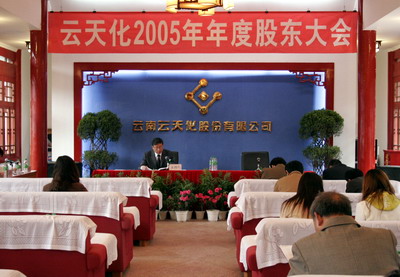 云天化股份公司董字〔2006〕2号云南云天化股份有限公司2005年年度股东大会决议云南云天化股份有限公司2005年年度股东大会由公司董事会召集,于2006年3月27日上午8:30在公司园中园会议室召开。出席会议的股东及股东授权委托代表共14人,代表股份总数350,438,372股,占公司有表决权股份...