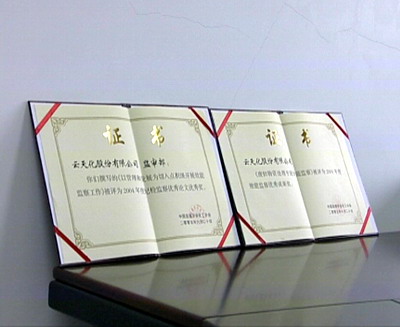 2005年8月25日~29日在哈尔滨召开的中国监察学会化工分会第三届会员代表大会上,公司监察工作获得两项殊荣。一是公司监审部撰写的《以管理和发展为切入点积极开展效能监察工作》论文被评为2004年度纪检监察优秀论文优秀奖;二是公司《废旧物资处理专题效能监察》被评为2004年度效能监察优秀成果奖。在这次...