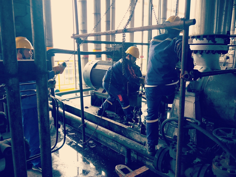 近日,工艺人员巡检发现制气P1301A机封泄漏大,无法满足其工艺使用要求,经多方商定,最终决定对其进行倒泵抢修。